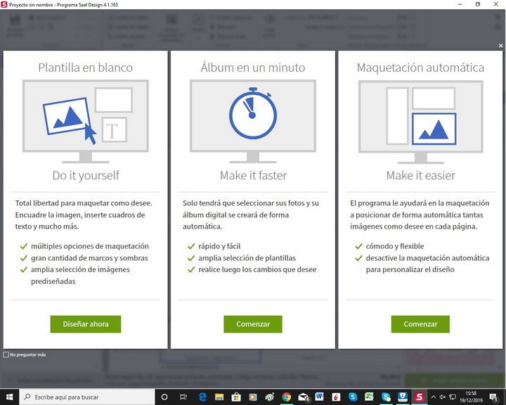 Un último paso antes de elaborar el álbum nos permitirá optar entre la elaboración propia o la automática, donde solo hay que seleccionar las fotografías y el programa crea el álbum fotográfico de forma automática, así como el número de páginas (posteriormente se podrán añadir más páginas si nos hemos quedado corto).