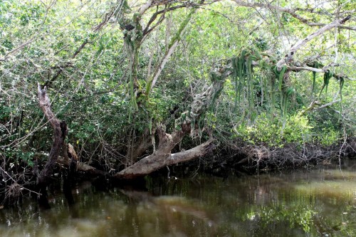 A la vuelta, la lancha hizo menos paradas y el trayecto se acorta a poco más de una hora. Destacar que a medio camino pasamos por las tierras de una comunidad de menonitas, que emigraron desde Europa Central, donde eran perseguidos. Aún ahora conservan su cultura y su lengua y están considerados gente enormemente honesta y trabajadora, de manera que aunque se relacionan poco con el resto de beliceños, no tienen ningún problema de persecución religiosa ni cultural. Aunque vimos de lejos sus granjas, de menonitas no vimos ninguno. En cambio en Belice capital, sí que nos habíamos encontrado alguno, y días después, en Guatemala, también. Los menonitas siguen vistiendo como en el siglo XVII o XVIII y reniegan de casi todo lo que no sea manual, por lo que es difícil verlos con coches o móviles, por ejemplo.