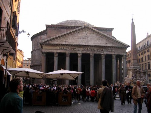 Desde la Plaza Navona no deberíamos tardar ni diez minutos en llegar a la Plaza de la Rotonda. Si hablamos de Piazza della Rotonda quizás nos podamos quedar tan anchos. Si decimos, sin embargo, que esta es la plaza donde se encuentra el Panteón de Roma, ya es otra cosa. Estamos hablando de palabras mayores. El motivo de la confusión es que el Panteón recibe también el nombre de Iglesia de Santa María de la Rotonda.