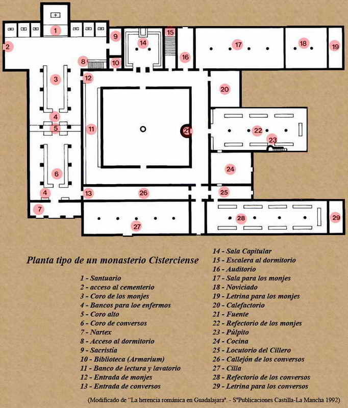 Aunque con ligeras modificaciones, la mayoría de monasterios del Cister se disponían de la forma señalada. Cada uno, desde luego, con sus particularidades.