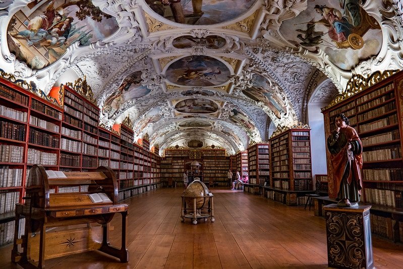 No menos espectacular resulta la biblioteca del Monasterio de Strahov, también en Praga. Se trata de un cenobio que forma parte de la orden de los Mostenses y que fue fundado por Vladislao II en 1143, aunque lo que visitamos en la actualidad es bastante posterior.