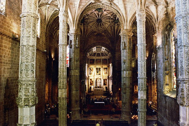 Las dos puertas de acceso a este monasterio de Lisboa son obras maestras del arte manuelino. Tras ellas, la iglesia resulta realmente impresionante, con seis ornamentadas y esbeltas columnas que se abren al llegar a la bóveda, como si de palmeras se tratasen, dando lugar a las nervaduras que cierran la nave.