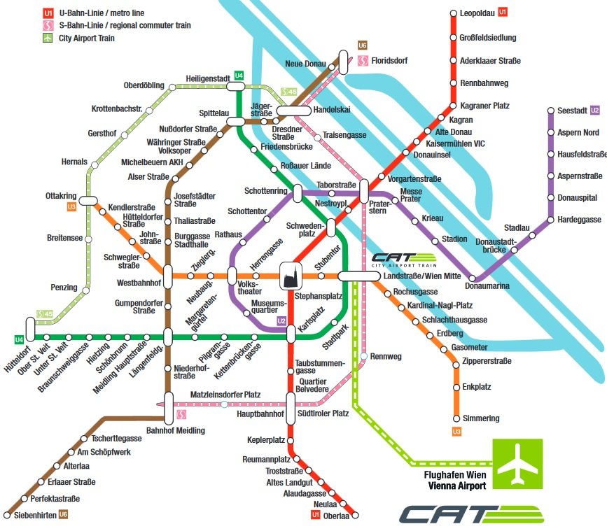 Se trata de un tren que hace exclusivamente el recorrido Aeropuerto de Viena – Centro de Viena. La frecuencias es de 2 trenes por hora, la duración del trayecto 16 minutos y el precio, 11€ ida y 19€ i/v. El tren os dejará en la estación de metro de Wien-Mitte.